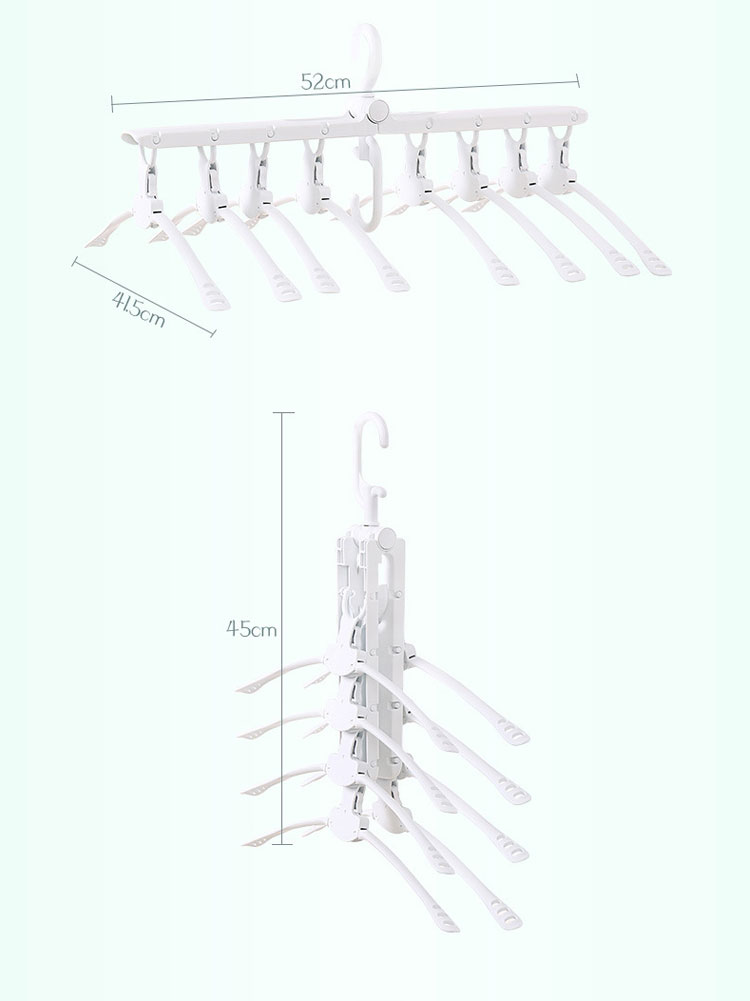 【8連式ハンガー】折りたたみ式 省スペース 乾湿両用 360°回転 収納便利